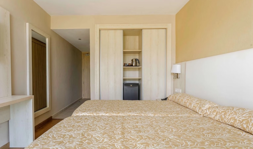 Camerele sunt luminoase și bine echipate, dotate cu aer condiționat, TV, seif (contra cost), minibar, baie proprie și balcon – unele dintre ele cu vedere la mare. Hotelul oferă opțiuni de masă variate: mic dejun, demipensiune, pensiune completă sau all inclusive.