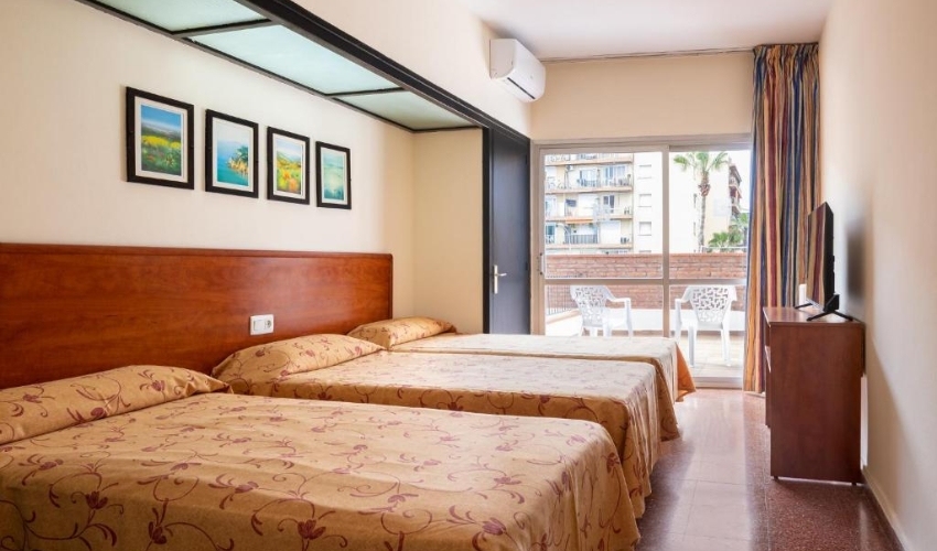 Hotelul oferă 156 de camere luminoase, dotate cu aer condiționat, balcon mobilat, TV cu canale prin satelit, Wi-Fi gratuit și baie privată cu articole de toaletă gratuite și uscător de păr. Camerele sunt disponibile în variante twin, triple și familiale, adaptate pentru diferite nevoi de cazare.