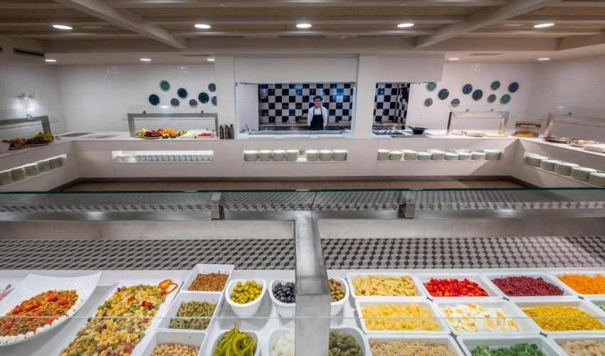 Restaurantul principal servește mese tip bufet cu preparate internaționale și locale, iar oaspeții pot savura băuturi răcoritoare la barul de la piscină. Hotelul oferă opțiuni de cazare cu mic dejun, demipensiune sau pensiune completă.