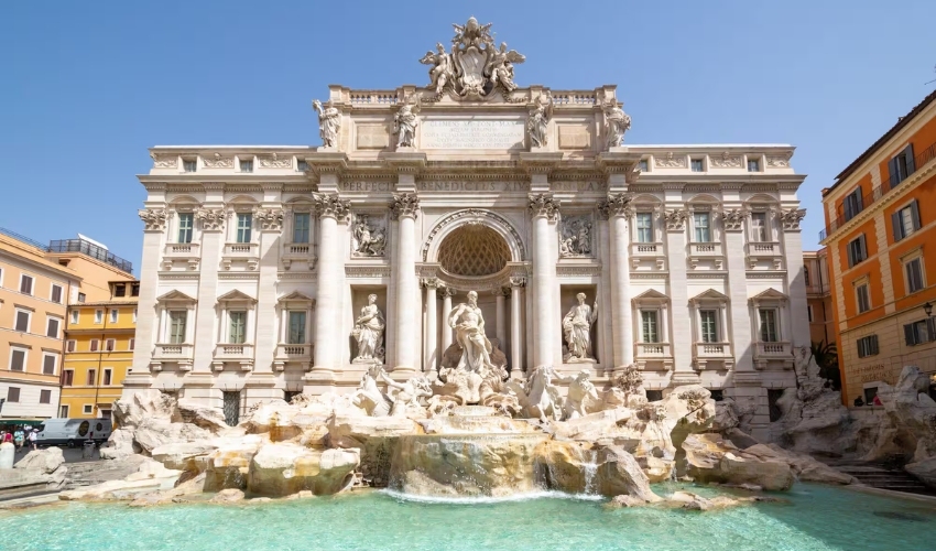 Фонтан Треви → знаменитый барочный фонтан, где принято бросать монету и загадывать желание.